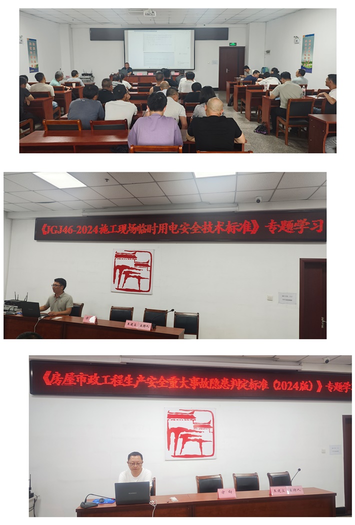 安全管理部門(mén)負責人詳細宣貫了《JGJ46-2024施工現場(chǎng)臨時(shí)用電安全技術(shù)標準》和《房屋市政工程生產(chǎn)安全重大事故隱患判定標準(2024版)》,并結合公司實(shí)際項目案例,深入淺出地解讀各項條款,明確各崗位安全生產(chǎn)職責,讓員工對安全操作規范有了更深刻的認識。